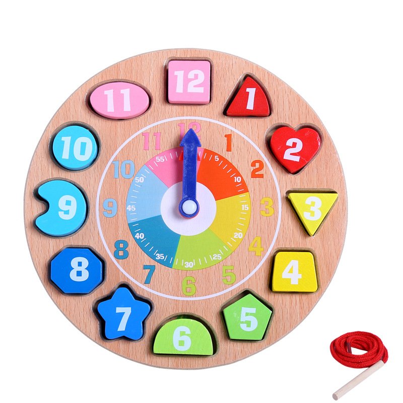 Wooden Shape Color Sorting Clock Teaching Time Number Puzzle