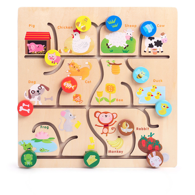Farm Animals Wooden Sliding Maze – Move The Animals to The Home – Made from Sturdy Wood to Last